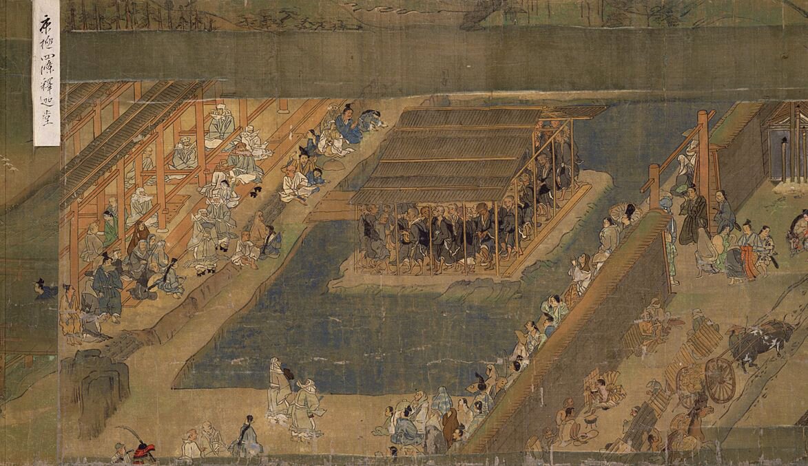 Un cambiamento simile si avverte anche in ambito religioso, dopo che le sette esoteriche buddiste del periodo Heian (Tendai e Shingon) cedono innanzi all’influenza della Terra Pura (Jōdo), che predica l’uso di pratiche semplici di devozione al Budda Amitābha. Queste sette, molto attive tra il tredicesimo e il quattordicesimo secolo, si serviranno ampiamente degli emaki per illustrare e promuovere la propria dottrina. Diverse pratiche religiose influenzeranno gli emaki: l’adozione di sermoni pubblici e di sessioni etoki indurranno gli artisti a usare rotoli sempre più grandi in modo da rappresentare i protagonisti della narrazione come sproporzionati rispetto al resto della scena, ma sufficientemente grandi da essere visibili da lontano, conferendo una tipica prospettiva irrealistica giapponese, come nell'“Ippen Shonin ekotoba den”.