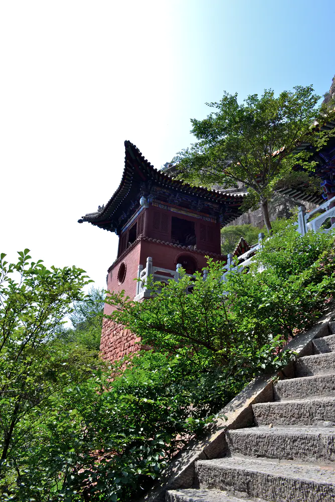 Sui monti cinesi sorgono monasteri, templi e santuari. Il monastero è esso stesso una raffigurazione del monte, con alture diverse (poiché è costruito sul pendio, ma anche le piattaforme dei padiglioni e i padiglioni stessi presentano diverse alture), picchi (padiglioni e pagode), sentieri (i collegamenti tra i vari edifici, spesso divisi da giardini), valli (spazi retrostanti liberi o camminamenti). L’ingresso principale del monastero evidenzia inequivocabilmente questa identità, è detto infatti shānmén 山門 – “porta del monte”. L’intera architettura del tempio è una raffigurazione della salita al monte, l’area più sacra si trova spesso sulla piattaforma più alta, quasi al centro del complesso o leggermente dietro, poi si ridiscende con le sale posteriori, come scendendo appunto da un monte.