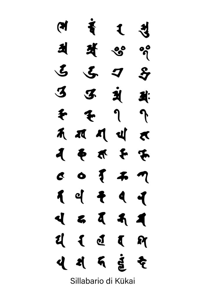 Per Kūkai le lettere sono molto importanti, si collocano nel punto focale dell’interazione tra voce, lettere e realtà e una volta tornato in Giappone, compose il proprio sillabario in Siddhaṃ, nel quale aveva identificato 59 sillabe diverse. Per compilarlo si era servito dei testi in Siddhaṃ e di altri in cinese.