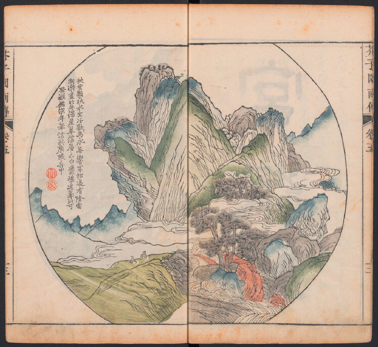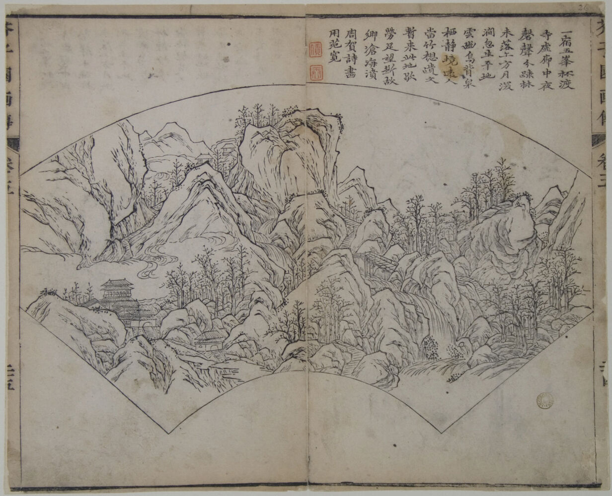 Il manuale Jieziyuan huazhuan, curato da Wang Kai 王概 (1645-1705), ricoprì un ruolo fondamentale non solo nella trasmissione delle teorie e della storia della pittura cinese in Giappone, ma fu anche la fonte visuale più significativa per la produzione pittorica di uno dei più grandi artisti di pittura di paesaggio del periodo Edo: Ike Taiga 池大雅 (1723-1776). È possibile infatti che il collega Gion Nankai 祇園南海 (1677-1757) avesse donato a Taiga una copia della sezione del manuale relativa alla pittura di paesaggio e che quest’ultimo ne avesse fatto largo uso per le sue opere. Ike Taiga era un pittore nanga 南画, ovvero appartenente alla scuola di artisti che cercavano di emulare lo stile della pittura della scuola meridionale cinese dei pittori letterati. A differenza di essi però, che incarnavano la figura dell’artista che realizzava opere per diletto e non necessariamente come fonte di guadagno e che rifiutava i modelli utilizzati dai pittori accademici, i pittori nanga erano artisti e intellettuali che appartenevano a diverse classi sociali e nella loro pittura incorporavano elementi provenienti sia dalla pittura accademica di periodo Song (1127-1279) e Ming (1368-1644) sia dalla pittura wenren 文人.