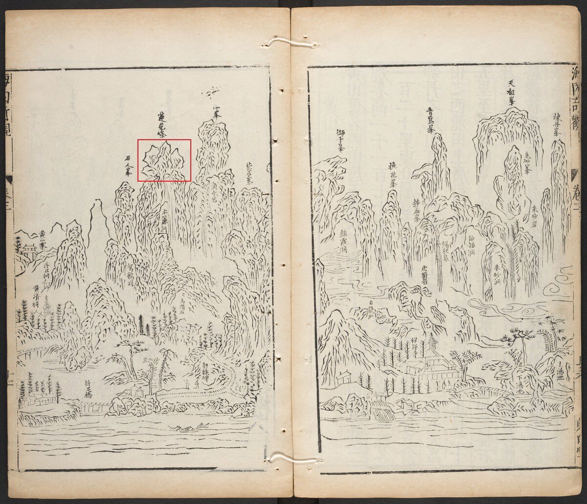 In questi supporti, i luoghi venivano rappresentati con degli elementi che permettevano di identificarli, ma che a volte non erano corrispondenti alla realtà, ma riprendevano il nome del luogo. Ne è un chiaro esempio il celebre Picco del Loto delle montagne Huangshan, nella provincia di Anhui, che nella gazzetta Xin juan Hai nei qi guan新鐫海内奇觀 (lett. Nuove stampe delle meraviglie in tutto il paese) del 1609 viene raffigurato come un fiore di loto, nonostante la conformazione rocciosa abbia una forma del tutto differente.