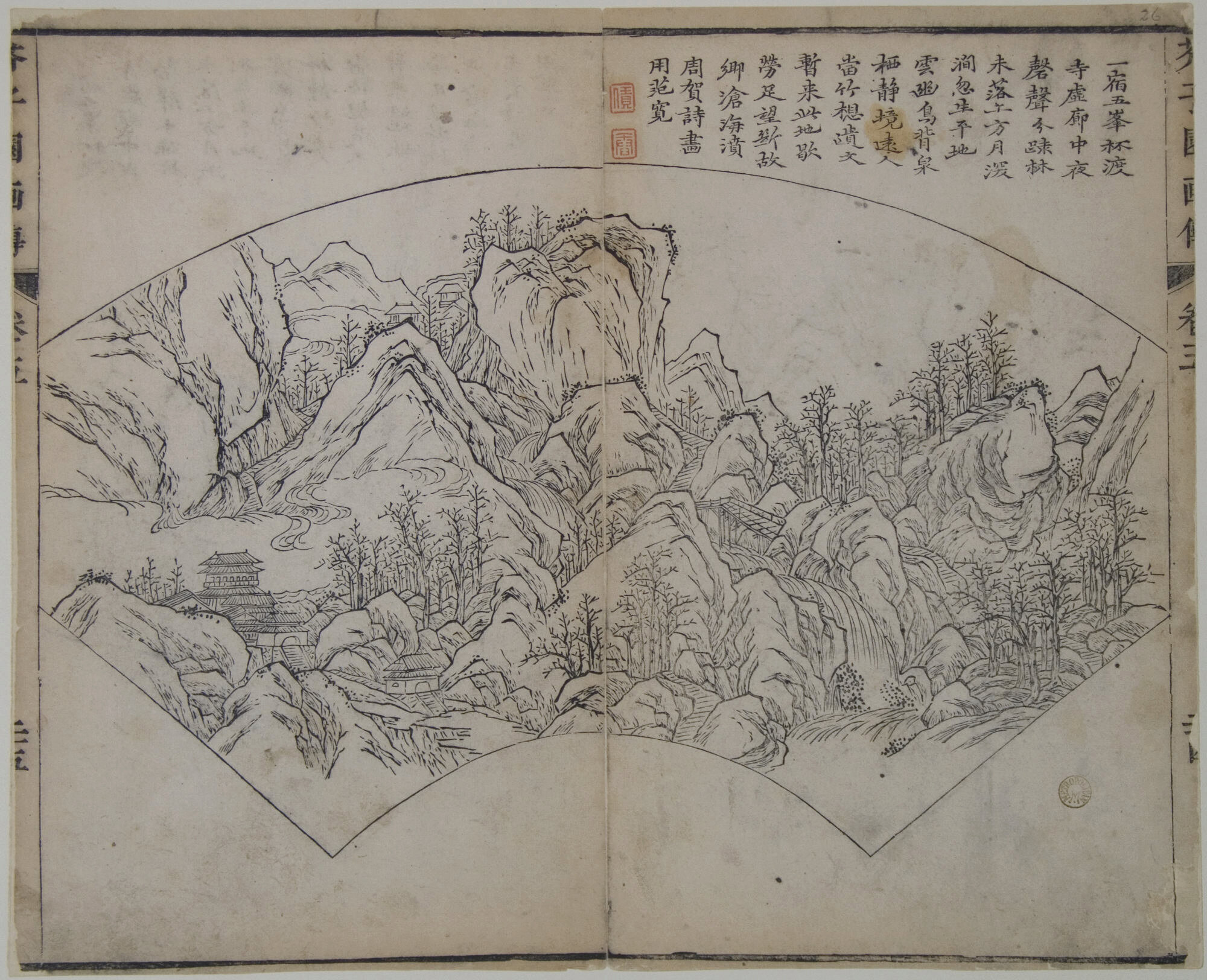 Verso la fine della dinastia Ming (1368-1644) e l’inizio della dinastia Qing (1644-1912), nacque e divenne sempre più popolare e diffusa una nuova funzione legata alla pittura di paesaggio a seguito dello sviluppo dell’economia e della ricchezza nella area di Qiantang, che comprendeva anche la città di Hangzhou e la sua provincia. La fiorente situazione economica portò allo sviluppo della cultura di viaggio che riguardava non soltanto la classe dei pittori letterati, ma diverse categorie di artisti e i loro mecenati, che spesso erano mercanti che contribuivano all’accrescimento della domanda delle immagini di luoghi celebri. Si giunse così alla produzione di massa di libri di viaggio e stampe xilografiche da matrici in legno, che venivano spesso inserite all’interno di enciclopedie e di gazzette.