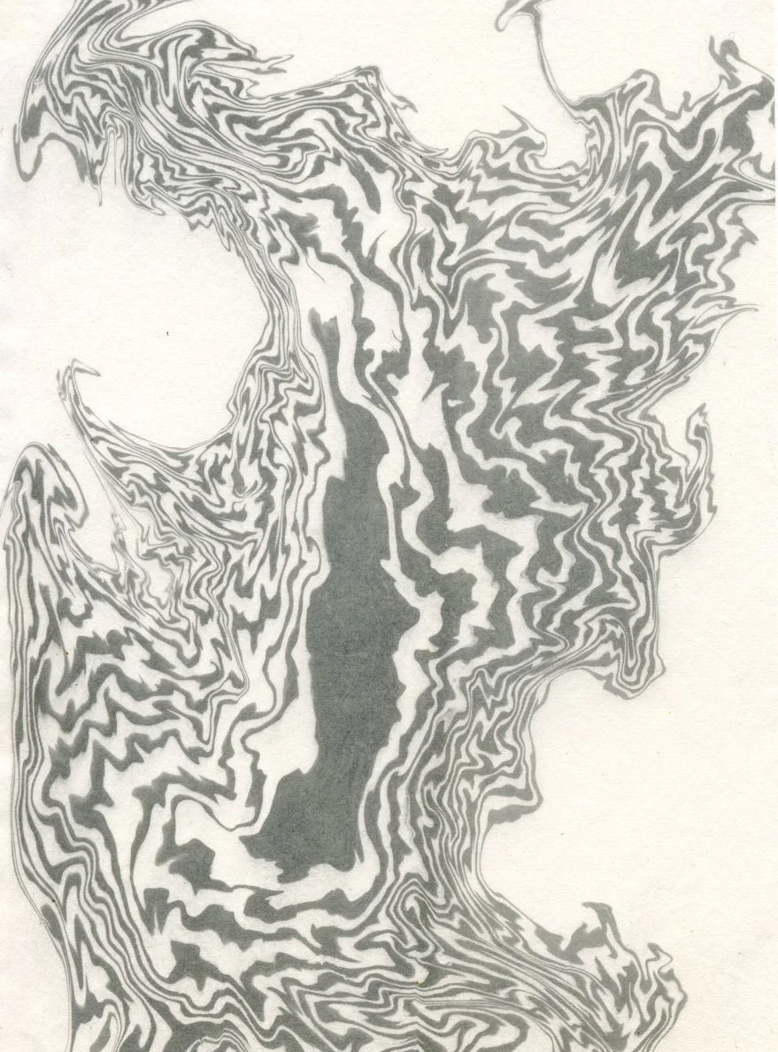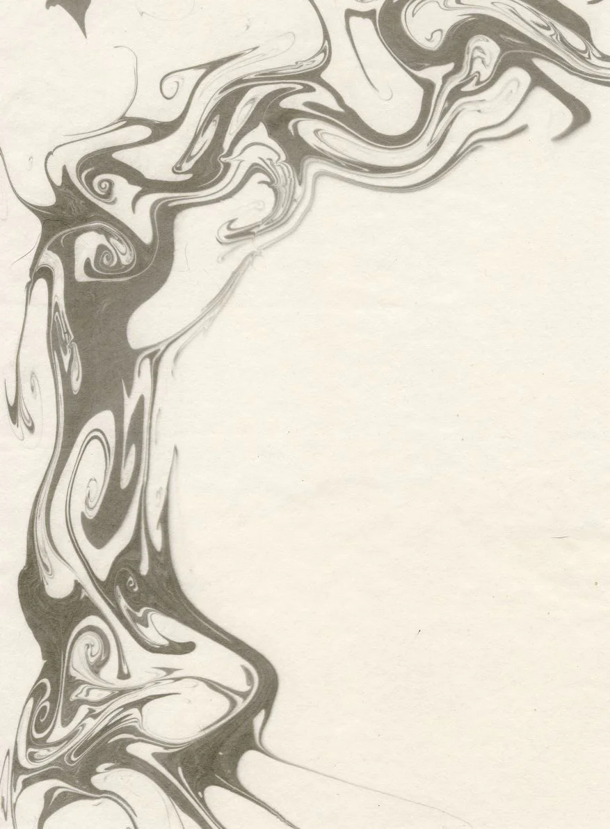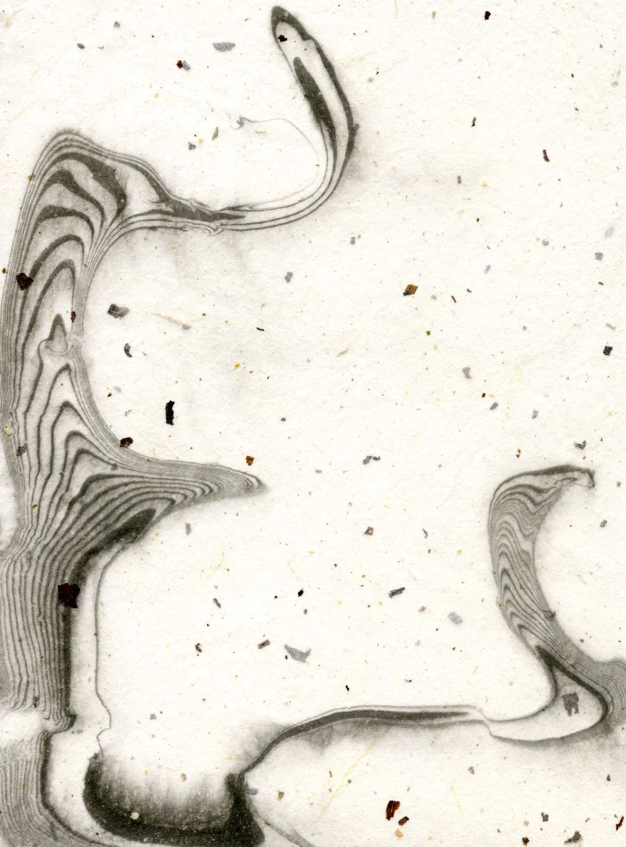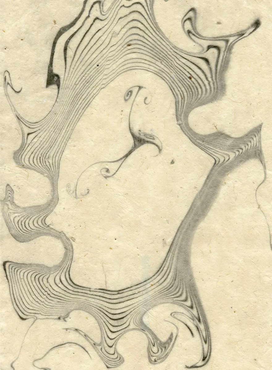 Le linee scure si dispongono in configurazioni sempre diverse e imprevedibili, sorprendendo ogni volta. Nel suminagashi infatti, rispetto al segno che l’artista traccia direttamente sulla carta, è l’acqua a muovere le macchie d’inchiostro e questo movimento è indipendente dalla volontà dell’artista. Chi pratica suminagashi sente di doversi affidare all’acqua e alla sua energia creatrice, il disegno fluttuante che ne deriverà sarà comunque il risultato di un particolare stato psicofisico.